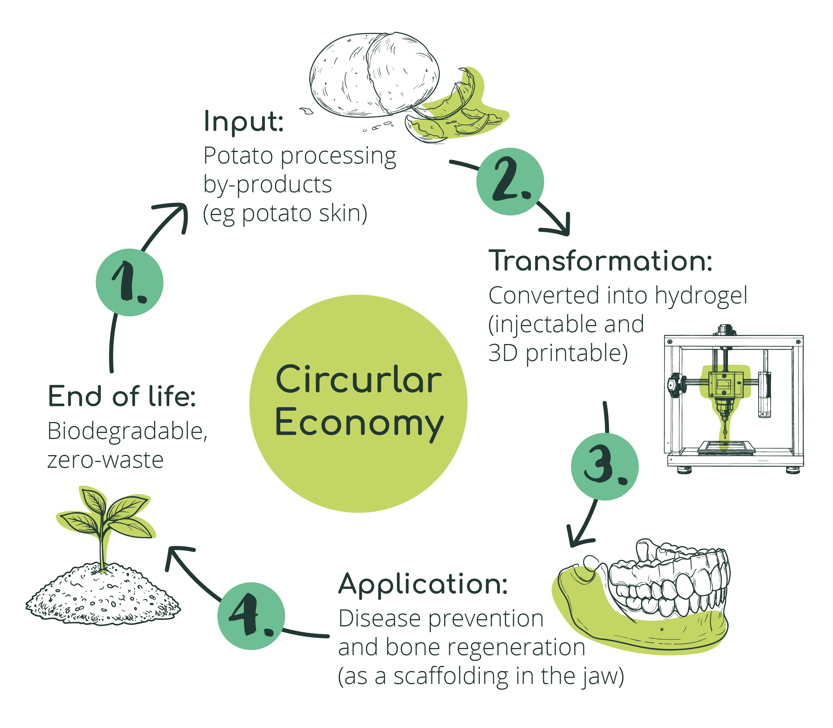 GreenNanoBone addresses this gap. It focuses on preventing MRONJ and promoting tissue regeneration using smart, bioactive and antimicrobial materials. The project’s approach is deeply sustainable: GreenNanoBone transforms agricultural and industrial waste into valuable resources, linking therapeutic innovation with the broader societal goal of reducing healthcare's environmental footprint.